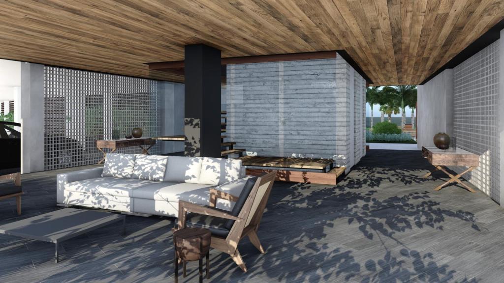 Belair Shores has been planned as a true resort‑style community, with an amenity program that turns the waterfront into the project’s social heart. The ground level features an ocean‑front resort pool positioned along the shoreline, surrounded by sun decks and lounging areas. A sea‑fed “natural” pool integrated into the coast and a private dock allow residents to interact directly with the water and provide a launch point for small craft and ocean activities.