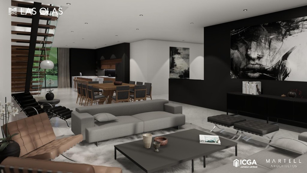 Positioned on the Columbus Cove coastline, Las Olas sits within one of Jamaica’s most desirable resort corridors. The masterplan balances ocean proximity with privacy and views, arranging mid‑rise buildings around the central water courtyard so circulation, amenity, and landscape flow together as one place. Architecture favors long sightlines, deep terraces, and shaded outdoor rooms that extend daily life into the climate.